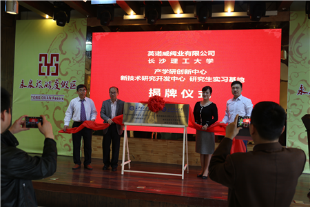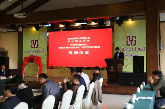2018年4月11日上午,在铜陵永泉农庄举行,乐竞在线注册-乐竞(中国)与长沙理工大学“产学研创新中心”、“新技术研究开发中心”、“研究生实习基地”揭牌仪式。